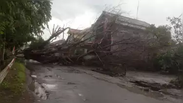 Nganjuk, tvOnenews.com - Hujan deras disertai angin kencang mengguyur wilayah Kabupaten Nganjuk, menyebabkan jalur utama yang menghubungkan Nganjuk-Bojonegoro tertutup total. Insiden ini terjadi ketika sebuah pohon tumbang menutupi seluruh jalan, menghalangi akses kendaraan dari kedua arah.