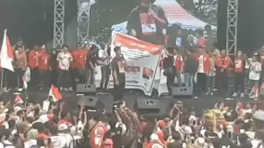 Sidoarjo, tvOnenews.com - Partai Solidaritas Indonesia (PSI) menggelar kampanye akbar di Gelora Delta Sidoarjo. Ketua Umum PSI Kaesang Pangarep meminta dukungan untuk mencoblos partai abang sing anyar atau partai berwarna merah yang baru.