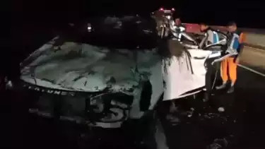 Namun saat di lokasi kejadian terjadi masalah sehingga mobil Fortuner terbalik di parit pinggir jalan tol.