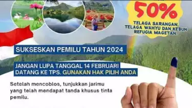 Magetan, tvOnenews.com - Pemerintah Kabupaten (Pemkab) Magetan ikut mendukung dan berupaya meningkatkan partisipasi masyarakat menggunakan hak pilih pada Pemilu Serentak 2024 dengan memberi potongan harga atau diskon tiket berwisata ke Telaga Sarangan.