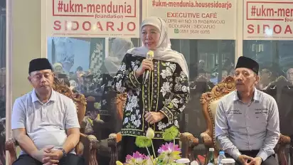 Sidoarjo, tvOnenews.com - Ratusan anggota SPSI Jatim berkumpul di Kafe Executive milik Haji Ahmad Fauzi, di Pagerwojo, Sidoarjo, menyambut kehadiran Khofifah Indar Parawansa.