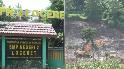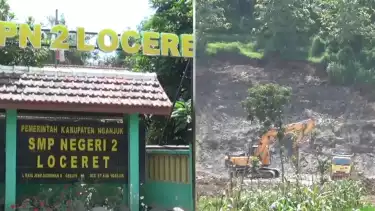 Nganjuk, tvOnenews.com - Aktivitas belajar mengajar di Sekolah Menengah Pertama Negeri (SMPN) 2 Loceret, Kabupaten Nganjuk, terganggu suara bising dan getaran keras aktivitas alat berat yang datang dari penambangan galian C di sekitar area sekolah.
