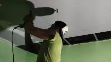 Hari ini kami sedang melakukan perbaikan di lokasi yang mengalami kerusakan diantaranya, plafon kamar mandi, kusen, lampu dan lain–lain.