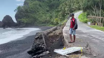 Jalan Penghubung Pasirian - Tempursari Terancam Putus Akibat Abrasi Laut Selatan, Begini Kondisinya