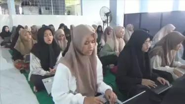 Para santri AIS ini sedang mengikuti pengajian Ramadhan, yakni mengaji kitab kuning. Uniknya yang di hadapan para santri dari berbagai daerah ini bukan kitab kuning, melainkan masing-masing menyimak laptop.