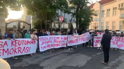 Surabaya, tvOnenews.com - Polrestabes Surabaya kembali didemo kelompok masyarakat Surabaya. Kali ini, Aliansi Pemuda Peduli Demokrasi Surabaya (APPDS) menggelar aksi demo di depan Mapolrestabes Surabaya, Rabu (20/3) sore. Para pemuda berorasi bahwa kedatangan mereka hendak meminta klarifikasi terkait postingan akun @connierahakundinibakrie.
