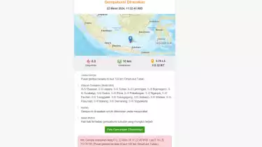 Gempa Bumi Magnitudo 6 di Tuban Terasa hingga ke Jawa Tengah