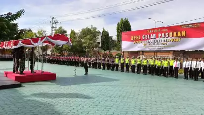 Mereka dilepas dalam apel gelar pasukan Operasi Ketupat Semeru 2024 di Mapolresta Banyuwangi, Rabu (3/4).