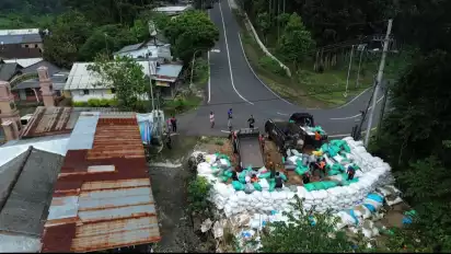 Mojokerto, tvOnenews.com - Dinding penyelamat di jalur tengkorak Cangar Pacet, Mojokerto, ditambah karung sekam. Hal ini untuk meminimalkan risiko fatal akibat kecelakaan rem blong, saat musim libur lebaran 2024.