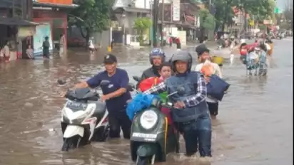 "Semua demi keselamatan pengguna jalan, karena genangannya cukup tinggi. Daripada banyak yang nekat menerobos, maka kami putuskan untuk menutup jalur kendaraan sampai air surut dan jalan bisa dilewati," kata Agus.