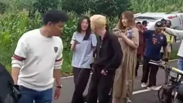 Terlihat mobil ini membawa wisatawan asing berbahasa Mandarin. Jumlah wisatawan yang dibawa pun tidak diketahui pasti. Terlihat pula sejumlah warga setempat yang berkerumun dan turut merekam.