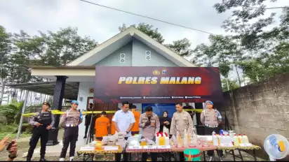 Pasuruan, tvOnenews.com - Satreskoba Malang berhasil mengamankan sejumlah pelaku dari dua lokasi produksi sabu-sabu di Pasuruan. Salah satu tempat tersebut berada di Perumahan Batu Mas, Kelurahan Petungasri, Kecamatan Pandaan, Kabupaten Pasuruan.Â