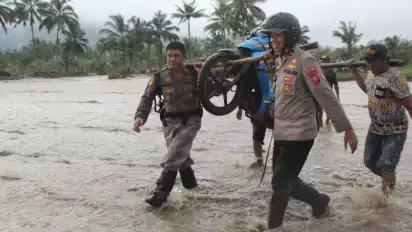 "Kita juga bantu warga gotong motor di sungai Regoyo. Karena aliran sangat deras dan tidak ada jembatan darurat, yang penting semua bisa melintas dengan selamat," terangnya.