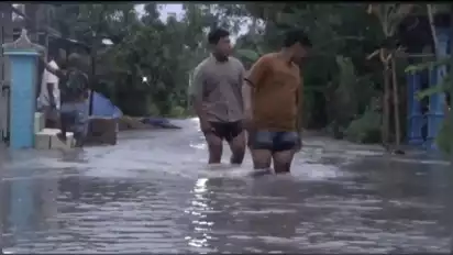Nganjuk, tvOnenews.com - Hujan deras mengguyur wilayah Nganjuk membuat aliran air irigasi tersumbat, akibatnya puluhan rumah di Desa Balonggebang, Kecamatan Gondang, Kabupaten Nganjuk tergenang banjir hingga setinggi lutut orang dewasa, pada Rabu (24/4).
