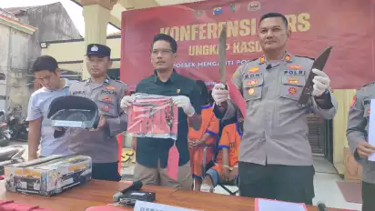 "Karena tidak bisa lewat, tersangka SU turun dari sepeda motor, kemudian tersangka mengeluarkan sajam berupa pisau penghabisan dari dalam jaketnya untuk melawan warga. Akibat tindakan tersebut saksi Suroso terkena pisau dan terluka bagian telinga kanan, lengan sebelah kiri, kemudian tersangka berhasil diamankan warga dan anggota opsnal Polsek Menganti," ujarnya.