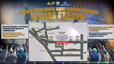 “Arus lalu lintas dari arah Jalan Veteran atau JMP dialihkan dengan melalui Jalan Kebonrojo dan Jalan Pahlawan,” tutur Haryoko.