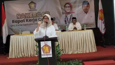Lumajang, tvOnenews.com - Rapat Kerja Cabang (Rakercab) Dewan Pimpinan Cabang Partai Gerindra Kabupaten Lumajang, resmi mengusung Hj. Ir Indah Amperawati sebagai Bakal Calon bupati Lumajang periode 2024-2029.