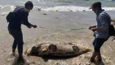 Gresik, tvOnenews.com - Seekor mamalia laut jenis dugong kembali ditemukan warga dalam kondisi mati membusuk di bibir pantai Pulau Bawean. Hewan langka yang memiliki nama ilmiah Dugong itu ditemukan di pinggir pantai Pajinggahan, Desa Tanjungori, Kecamatan Tambak, Pulau Bawean, Gresik, Kamis (2/5).