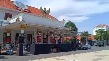 "Ada dua layar nanti mas, satu layar lebar di panggung, dan satunya videotron milik Pemprov Jatim," terang salah seorang petugas pemasangan alat yang sedang melakukan persiapan untuk nobar malam nanti.