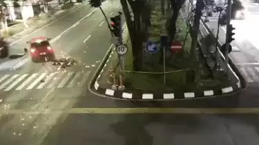Surabaya, tvOnenews.com - Kamera electronic traffic law enforcement (ETLE) berhasil merekam aksi ugal ugalan pengendara mobil Agya merah yang menewaskan seorang pengendara bermotor di jalan Diponegoro, Surabaya.