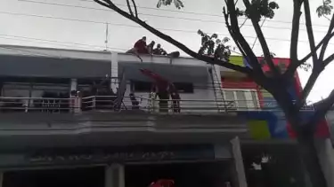 Banyuwangi, Jawa Timur - Warga sekitar Pasar Rogojampi, Banyuwangi, digegerkan oleh seorang buruh bangunan yang terjatuh dari atap toko dua lantai, Jumat (7/1/2022). Penyebabnya, korban tersetrum listrik dari kabel bertegangan tinggi. Beruntung, nyawa korban selamat. Tubuh korban berhasil dievakuasi warga bersama polisi. Proses evakuasi berlangsung dramatis.