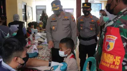 Kapolres Probolinggo melalui Wakapolres Probolinggo, Kompol Nurhalim bersama pejabat utama Polres Probolinggo dan Forkopimka Pajarakan, meninjau langsung pelaksanaan vaksinasi merdeka anak. Vaksin merdeka anak kali ini diikuti oleh 100 anak di lingkungan desa setempat.