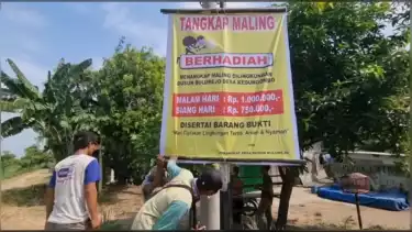Nganjuk, tvOnenews - Upaya untuk menanggulangi maraknya kasus pencurian di lingkungan mereka, warga Dusun Bulurejo, Desa Kedung Ombo, Kecamatan Tanjung Anom, Kabupaten Nganjuk, memasang banner sayembara tangkap maling berhadiah di sejumlah titik strategis.