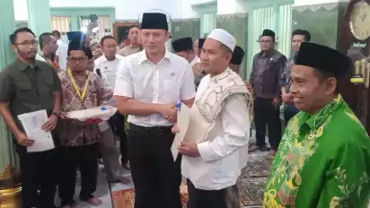 Gresik, tvOnenews.com - Setelah selama ratusan tahun tanpa kepastian hukum, Menteri Agraria dan Tata Ruang (ATR) Kepala Badan Pertanahan Nasional (BPN) Agus Harimurti Yudhoyono, akhirnya menyerahkan sertifikat wakaf di Kawasan Makam Sunan Giri Gresik, Jum'at (5/7).