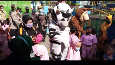 Dua Badut Hibur Siswa TK di Probolinggo Saat Jalani Vaksinasi Merdeka Anak