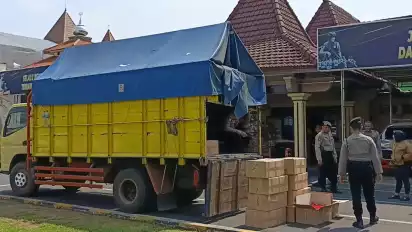 Mojokerto, tvOnenews.com - Truk pengangkut minuman keras disergap tim Samapta Polres Mojokerto Kota. Dari penyergapan tersebut, didapati 925 botol minuman keras jenis arak bali yang rencananya akan diedarkan di Kota Mojokerto, Jombang, dan Kediri.