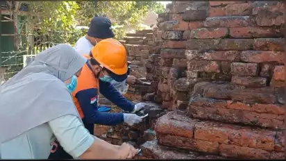 Cegah Tumbuhnya Spora, BPCB Jawa Timur Lakukan Konservasi Pembersihan Batu Bata di Candi Ngetos Nganjuk