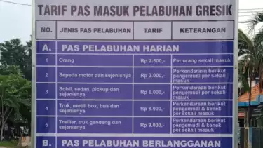 Di pantauan sekitar akses pintu masuk Pelabuhan Gresik area PT Pelabuhan Indonesia (Pelindo) III cabang Gresik, saat ini telah terpasang mesin E-Tol dan pamflet tarif biaya masuk, yang terdiri dari tarif pas masuk harian, berlangganan, dan jasa terminal penumpang.