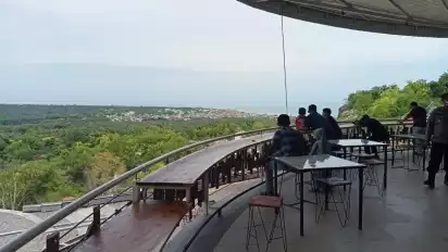 Lamongan, Jawa Timur - Ingin refreshing bersama keluarga, sambil menikmati suasana pemandangan perbukitan yang asri, hijau dan hamparan laut biru nan luas, Tebing Cafe yang berada di Bukit Kendil, Dusun Semerek, Desa Sendang Agung, Kecamatan Paciran, Kabupaten Lamongan, menjawab keinginan masyarakat.
