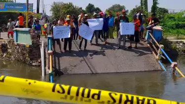 Warga dan Petani Tambak di Sidoarjo Demo Tuntut Pemerintah segera Perbaiki Jembatan Ambruk