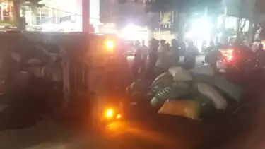 Nekat Ngebut di Tengah Jalur Kota, Pick Up Bermuatan Gabah Terguling di Probolinggo