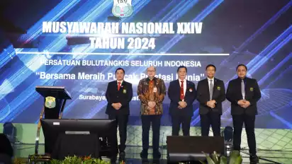 Munas PBSI ke XXIV tahun 2024 dibuka oleh Wakil Ketua Umum III KONI Pusat Andrie TU Soetarno didampingi oleh Dewan Penasehat Pengurus Pusat (PP) PBSI Wiranto, Ketua Umum PP PBSI Agung Firman Sampurna, Sekretaris Jenderal PP PBSI Fadil Imran dan Pj. Sekdaprov Jatim Bobby Soemiarsono yang ditandai dengan pemukulan gong.