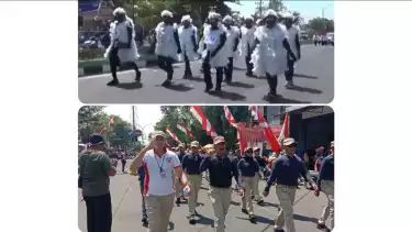 "Iya tadi ikut lomba gerak jalan untuk memeriahkan HUT RI ke-79. Sebelum bergabung di barisan lomba gerak jalan, saya menyempatkan diri memberangkatkan para peserta lomba gerak jalan tingkat SMA dan katagori umum di halaman Stadion Bangkalan," ujar Arief M Edie Pj Bupati Bangkalan