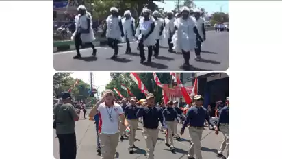 Lomba Gerak Jalan Peringati HUT RI Ke-79, Peserta Kenakan Kostum Unik, Pj Bupati Bangkalan Turun ke Jalan