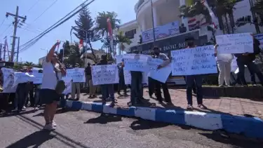 "Kami datang kesini untuk mengadu kepada perwakilan kami di DPRD untuk menolak peminjaman Rp100 miliar yang hanya digunakan untuk penerangan jalan umum," ungkap Koordinator Aksi, Hendro Tanotyo.