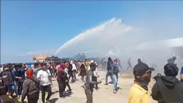 Sampang, tvOnenews.com – Aksi demontrasi warga di halaman kantor Komisi Pemilihan Umum Daerah (KPUD) Kabupaten Sampang, Madura berlangsung ricuh. Ratusan massa melempar benda yang berbahaya kepada petugas kepolisian yang sedang mengamankan kantor KPUD. Aksi pengunjukrasa semakin tak terkendali, sehingga petugas yang sudah siaga berupaya menghalau massa dengan mobil water cannon.