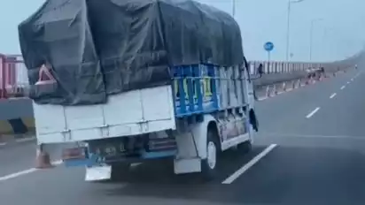 Truk tersebut melaju dari arah Madura menuju Surabaya dengan kecepatan tinggi sambil melakukan manuver oleng atau bergoyang-goyang, seolah-olah aksinya tersebut tidak membahayakan keselamatan diri sendiri maupun pengguna jalan lainnya.