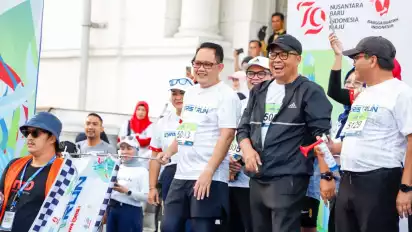 Surabaya, tvOnenews.com - Penjabat (Pj.) Gubernur Jawa Timur Adhy Karyono melepas 1600 pelari pada event Surabaya QRIS Run 2024 di depan Gedung De Javasche Bank Jalan Garuda Kota Lama Surabaya, Minggu (18/8).