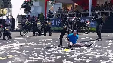 Banyuwangi, tvOnenews.com – Pelaksanaan Pemilihan Kepala Daerah (Pilkada) Serentak 2024 tinggal 3 bulan lagi. Sebagai kabupaten yang masuk dalam kode merah kerawanan penyelenggara Pilkada, Polresta Banyuwangi menggelar simulasi sistem pengamanan kota (Sispamkota), Senin (19/8). Kegiatan ini digelar di depan Pendapa Sabha Swagata Blambangan, dalam rangka Operasi Mantap Praja Semeru (OMP).