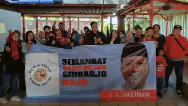 Sidoarjo, tvOnenews.com - Pendukung Prabowo Gibran dalam Pilpres lalu terus memberikan dukungan ke Fandi Utomo maju menjadi Calon Bupati Kabupaten Sidoarjo. Bermodal kemenangan Pilpres, Relawan Gibran Lovers Jawa Timur bergerilya untuk hasil yang sama bagi Fandi Utomo.