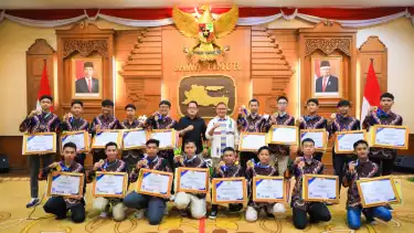 Surabaya, tvOnenews.com - Provinsi Jawa Timur berhasil meraih Juara Umum pada ajang Lomba Kompetensi Siswa Nasional (LKS) SMK Tingkat Nasional ke XXXII Tahun 2024. LKSN yang diselenggarakan pada tanggal 19-24 Agustus 2024 di Lampung mengusung tema "Merdeka Berprestasi, Talenta Vokasi Menginspirasi".