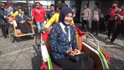 Nganjuk, tvOnenews.com - Suasana meriah menyelimuti Kota Nganjuk pagi ini ketika pasangan calon bupati dan wakil bupati, Bunda Ita dan Mbak Zuli, melakukan pendaftaran ke Komisi Pemilihan Umum (KPU) Nganjuk. Uniknya, pasangan ini memilih moda transportasi yang tidak biasa, yaitu naik bentor (becak motor) pada Selasa (27/8) sore.