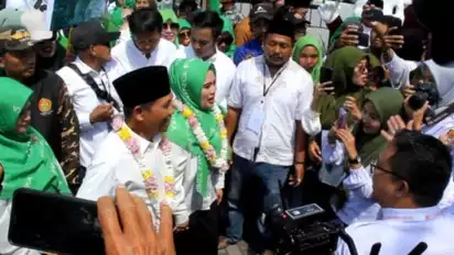 Pantauan tvOnenews.com di pendaftaran mantan Bupati Lumajang tersebut, diantar ribuan pendukung, Banser serta pimpinan partai pengusung, dari halaman Stadion Semeru menuju kantor KPUD Lumajang di Jalan Veteran, dengan berjalan kaki.