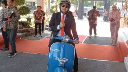 Unik, Anggota DPRD Kabupaten Nganjuk Ini Naik Vespa saat Pelantikan di Gedung Parlemen