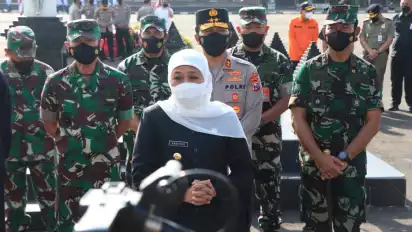 "Masyarakat mulai abai dengan prokes, seiring dengan melandainya angka Covid-19 di Jatim, sehingga masyarakat perlu diingatkan kembali untuk disiplin prokes, sebagai kewaspadaan penyebaran varian Omicron," jelas Khofifah Indar Parawansa dalam amanah upacaranya.