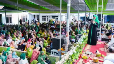 Dihadiri belasan ribu jamaah khususnya Muslimat NU, Khofifah mengajak seluruh yang hadir untuk banyak mengamalkan sedekah sebagaimana yang gemar dilakukan Nabi Muhammad SAW serta Syech Abdul Qadir Jailani serta para ulama.
